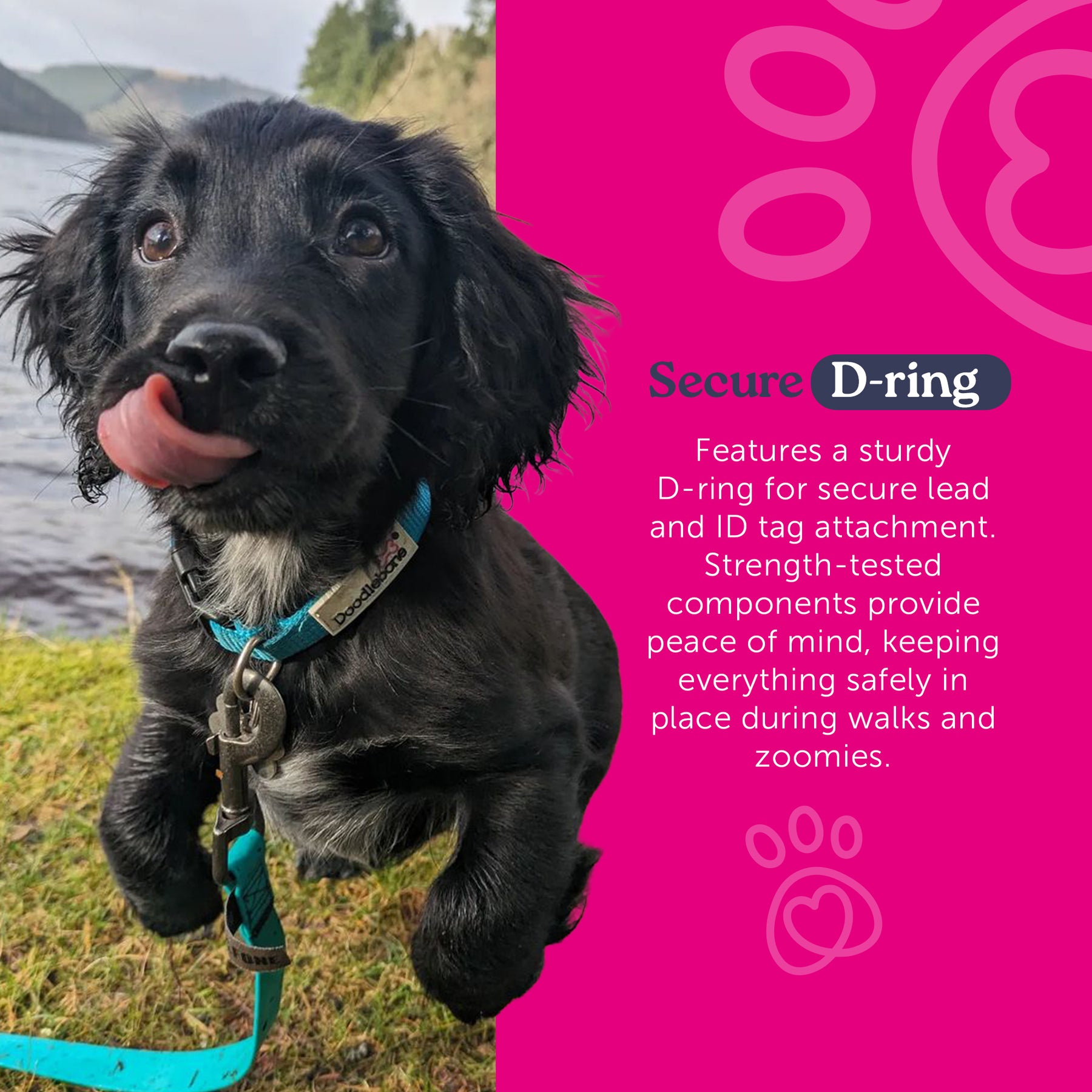 🦴 Strong D-ring for lead and ID tag attachment