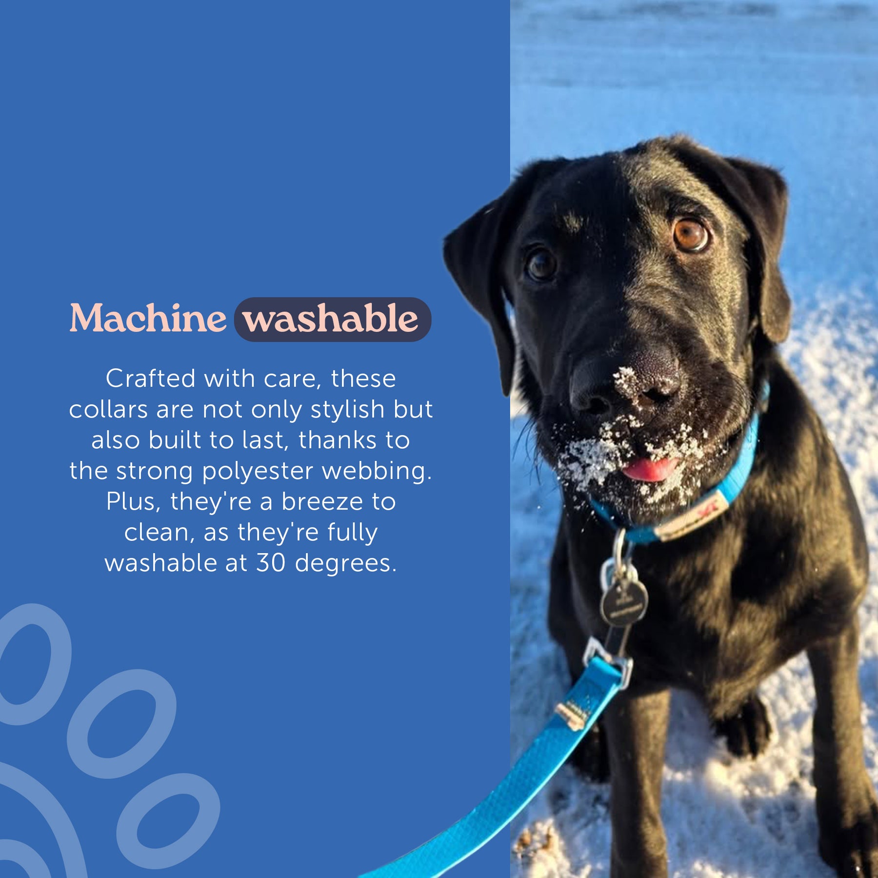 With a sturdy D-ring for attaching both a lead and an ID tag, plus strength-tested components for peace of mind, this collar is built for daily adventures big and small. And because muddy walks happen, it’s fully machine washable – ready to go again and again.