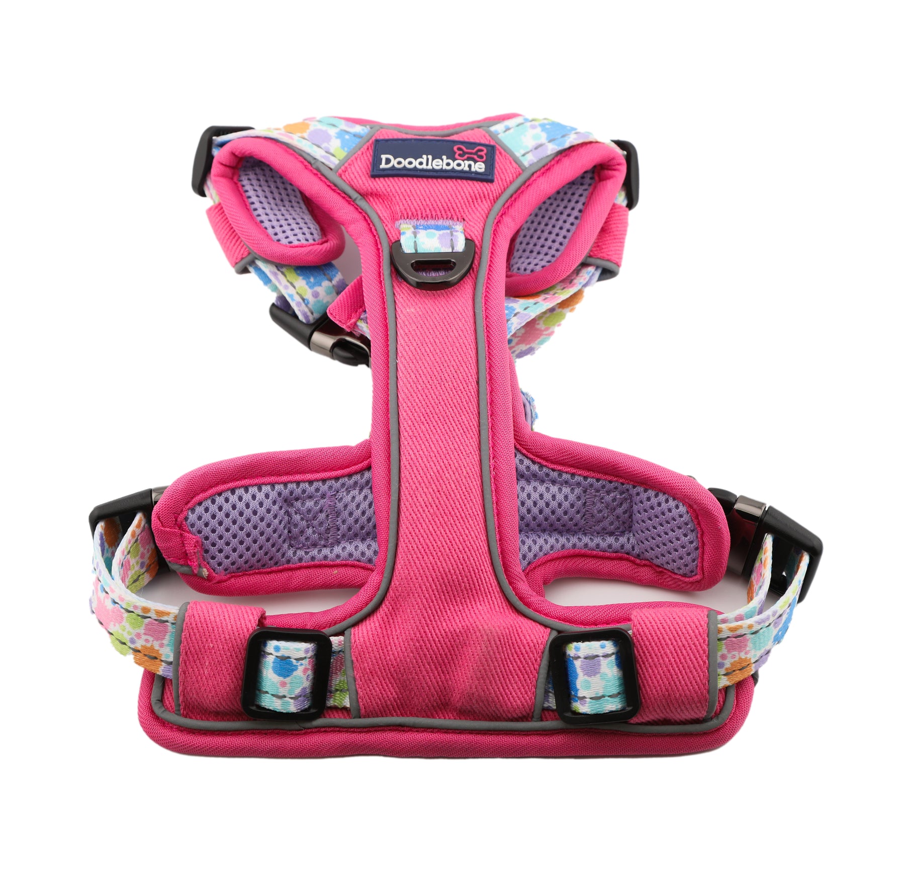 We’ve added a padded grab handle for when you need extra control, plus a clever stretchy tummy strap that flexes as your dog sits, lies down or zooms about – moulding to their shape for a snug, comfy fit. Reinforced stitching throughout makes it super strong and durable, while strength-tested metal buckles keep it reliable on every walk. Reflective details help with visibility, breathable airmesh keeps things cool, and yep – it’s machine washable too.